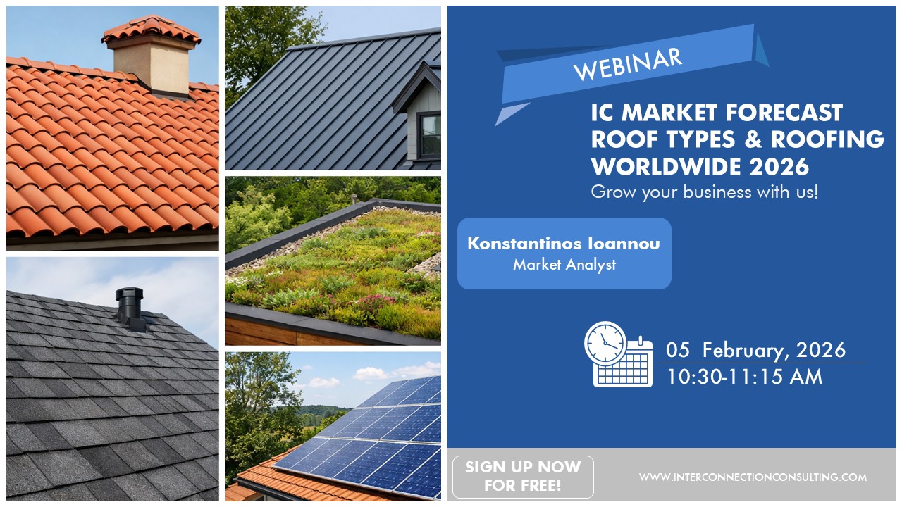 FREE ONLINE PREVIEW After a relatively uneventful period in 2024, the roofing market picked up in 2025, with expectations of recovery in the near future. While some countries are approaching double-digit growth, others continue to face stagnating demand. What results do professionals expect by the end of 2026? Does the market have the potential for further growth in the coming years? On February 5th, our Market Analyst Konstantinos Ioannou will present our latest updates concerning the Roofing Industry performance in Worldwide. Our market analyst will provide a broad overview about the content of our annual market report including our latest data for product groups shares from 2022 to 2029 forecasted.